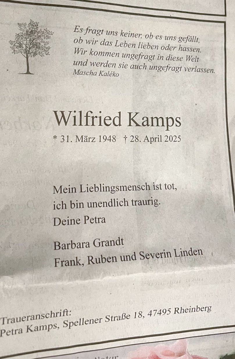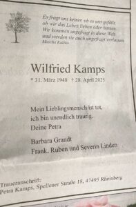 Nachruf für Wilfried Kamps, verstorben am 28.04.2025